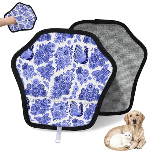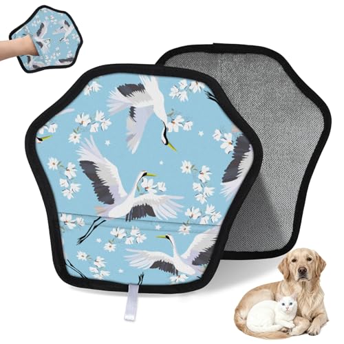 WowPrint Grues à fleurs Gants d'épilation d'animaux domestiques pour chat, chien, oiseau, réutilisables, électrostatiques, poils d'animaux domestiques, brosse pour canapé, vêtements, tapis, meubles