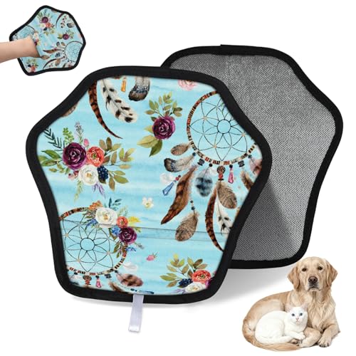 WowPrint 1 gant d'épilation floral pour chat et chien ethnique réutilisable électrostatique, brosse pour canapé, vêtements, tapis, meubles, siège de voiture