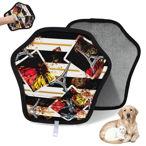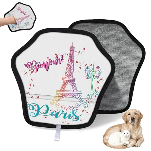 WowPrint Bonjour Tour Eiffel Gant d'épilation d'animaux domestiques pour chat et chien Tour Eiffel Paris Gants électrostatiques réutilisables Brosse Brosse Outil pour canapé, vêtements, tapis, meubles