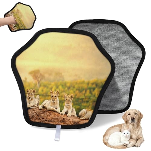 WowPrint 1 paire de gants d'épilation pour chat et chien, motif lion mignon, gants électrostatiques réutilisables, brosse pour canapé, vêtements, tapis, meubles, siège de voiture