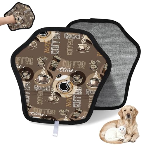 WowPrint Doodle Cafe Coffee Gant d'épilation pour chat et chien Motif café Réutilisable Gants électrostatiques Brosse pour canapé, vêtements, tapis, meubles, siège de voiture