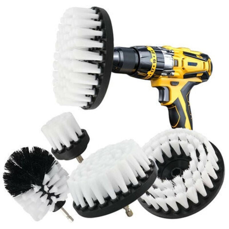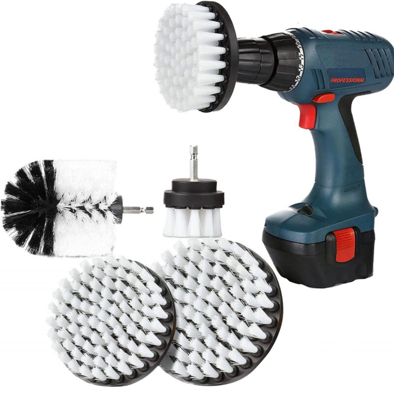 Dpzo - Brosse Nettoyage Perceuse 5 pièces, Brosse pour Perceuse Voiture Carrelage Tapis Baignoire Cuisine Toilettes Blanc