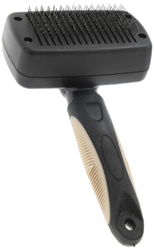Rosewood Brosse Carde Auto Nettoyante pour Chien Taille L, brosse pour grands chiens à poils mi longs à longs, picots en acier inoxydable et poignée antidérapante ergonomique