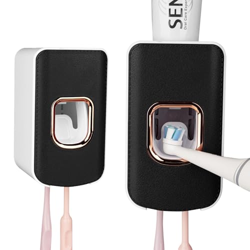 Support de brosse à dents à 2 fentes et distributeur de dentifrice à montage mural, presse-dentifrice automatique, organisateur 2 en 1 pour brosse à dents pour douche (noir)
