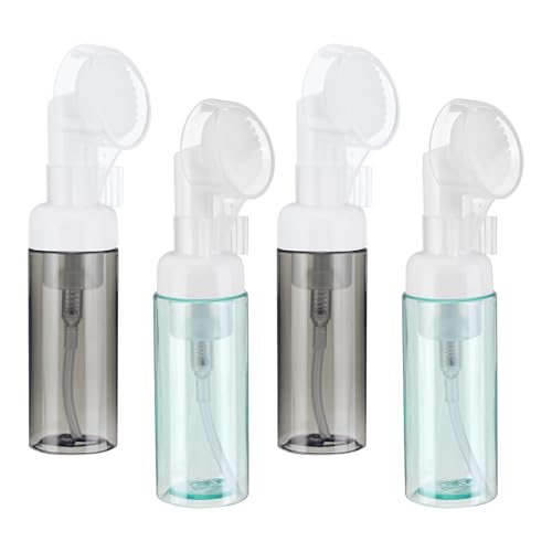 QUARKZMAN 4Pcs Distributeur de Savon en Mousse, 2oz / 60ml Bouteille de Mousse Nettoyante pour Le Visage avec Brosse pour Shampoing, Gel Douche, Transparent/Transparent Noir