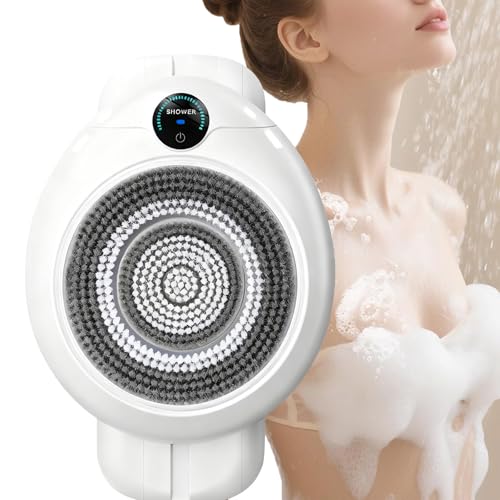 Brosse exfoliante électrique pour Le Dos sous la Douche, Fixation Murale, autonettoyante corporelle Mains Libres, 4 Vitesses, 2 têtes interchangeables, pour Un Nettoyage en Profondeur