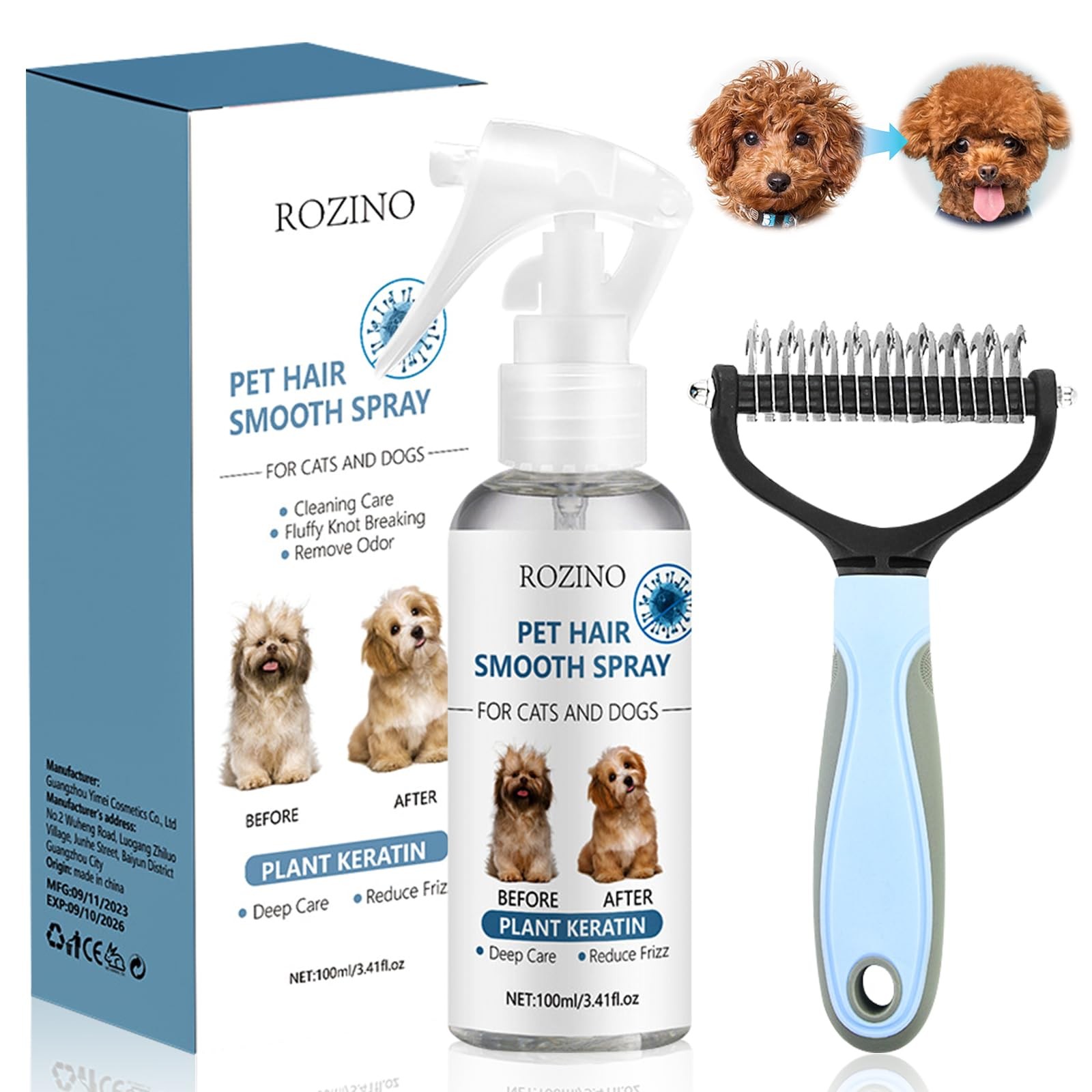Spray Demelant Chien et Chat+Brosse pour Chien et Chat Poils Longs,Lissage de...