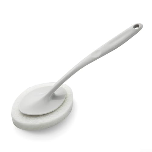 MeevrgR Brosse de nettoyage de salle de bain, éponge à long manche, brosse à récurer avec poignée pour nettoyer les murs de la salle de bain, le carrelage et la baignoire (gris)