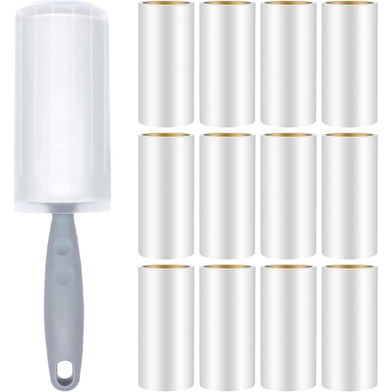 12 Rouleaux Rouleau Poils Animaux, 720 Feuilles Brosse Collante, 1 poignées + 1 Housse de Protection, Rouleau adhesif Vetement pour VêTements,