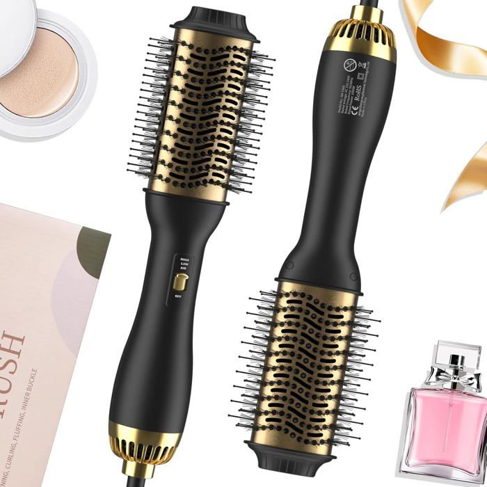 TQQ Brosse Soufflante 2.0 - Brosse Chauffante Volumisante Salon One-Step pour Cheveux Or Noir