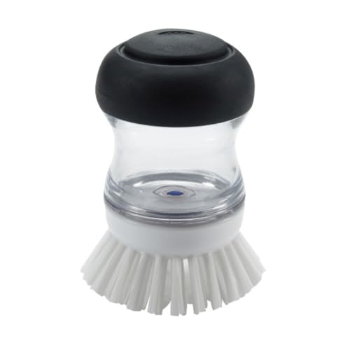 OXO Good Grips, Brosse à vaisselle ronde distributrice de savon, Brosse pour le nettoyage de la vaisselle en nylon, Blanc