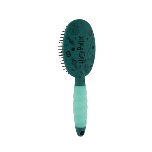 Harry Potter - Brosse à Cheveux Démêlante - Brosse Ergonomique - Manche Gel en Silicone - Tous Types de Cheveux - Accessoire Officiel de l'École de Poudlard - Serpentard