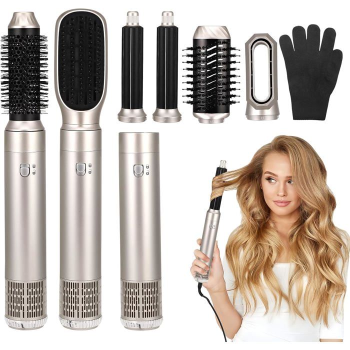 Brosse soufflante Sèche Cheveux Air Styler 7-en-1Brosse Coiffante Chauffante 1200W Lissage BouclesVolume3 Températures