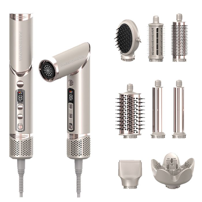 Ensemble brosse soufflante PASSIONOVA 1600W multifonctionnel 8 en 1 pliable LED affichage numérique 3 niveaux réglables brushing