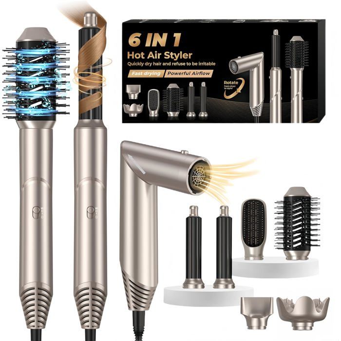 Air Styler 6 In 1 Hair Styler avec Seche CheveuxBoucleur a AirBrosse SoufflanteBrushing Brosse SoufflanteBrosse Lissante