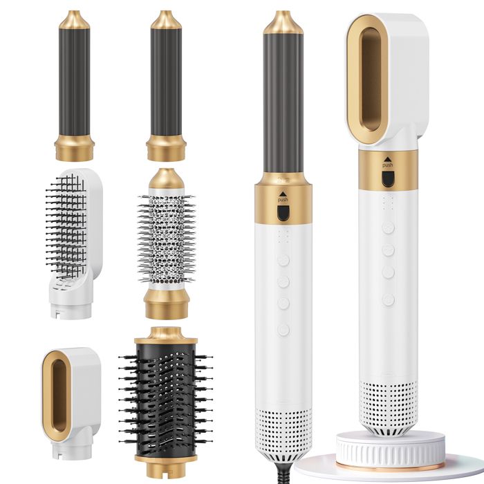 UKLISS Seche Cheveux Professionnel 7 en 1, Brosse Soufflante Air Styler Set avec Auto-Wrap Boucleur a Cheveux, Dffuseur Seche Cheveux, Brosse Chauffante Brushing, Brosse Lissante pour Cheveux