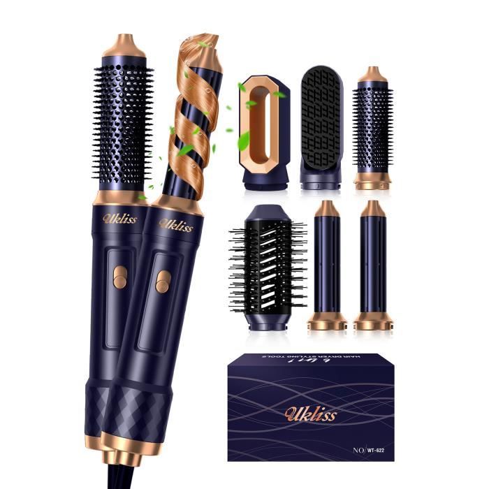 UKLISS Airstyler 6 en 1, Brushing Brosse Soufflante avec Sèche Cheveux, Boucleur a Cheveux Automatique, Lisseur cheveux, Hair Dryer Airbrush, Coffrets Cadeaux Set pour Femmes Styling (Bleu)