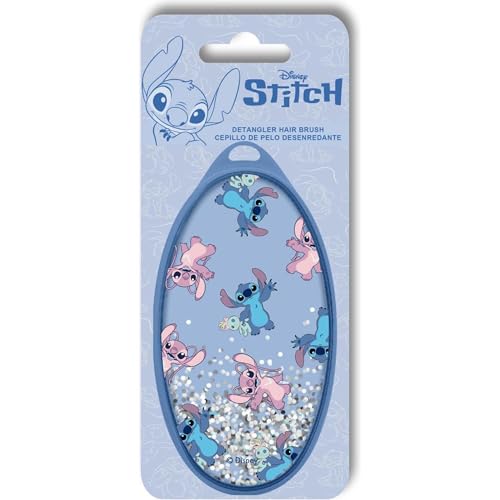Disney Stitch Brosse démêlante ovale bleue avec paillettes liquides en mouvement et imprimé du sympathique extraterrestre