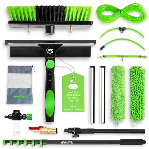 VHAYR Brosse Telescopique Toiture (505 cm) | Nettoyeur Vitre avec Recharges en Microfibre et en Chenille | Raclette en Caoutchouc Nettoyeur Vitre |Raclette Douche 25 cm