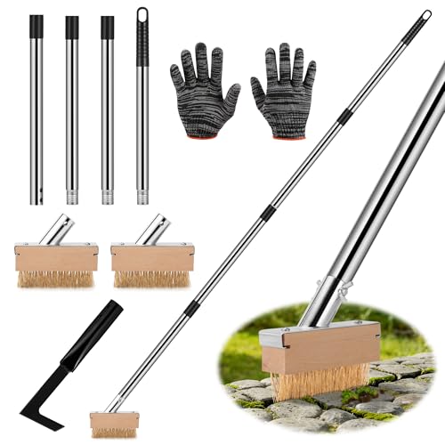 Brosse métallique pour terrasse, jardin, désherbant, bloc de pavage à long manche pour nettoyer les joints, les mauvaises herbes, la mousse, les racines et les allées (1 pièce)