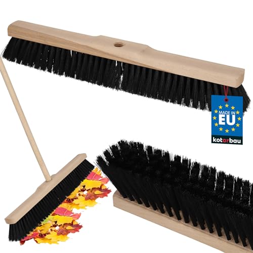KOTARBAU® Balai Brosse - avec Manche en Bois - 30 cm - Marron - Balai Cantonnier - Brosse pour Terrasse Poils Durs - Bois de Hêtre & Nylon - Brun Noir Naturel