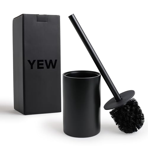 Yew Design Brosse de Toilette Noir Mat avec Support pour Salle de Bain – Brosse de Nettoyage pour Salle de Bain au Design élégant, Poils Robustes et Durables