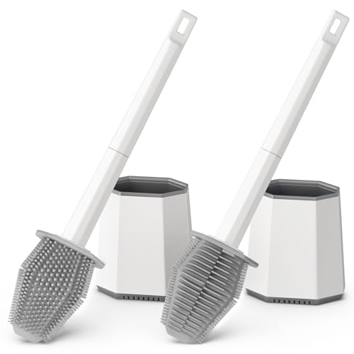 Lot de 2 brosses WC en Silicone avec Pointes en Silicone, séchage Rapide, Brosse pour Toilettes, Baignoire, Salle de Bain avec Support Mural, Brosse de Nettoyage créative avec Base adhésive.