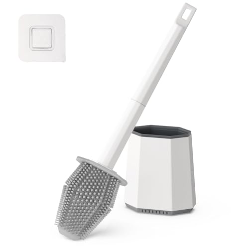 HIYAA Brosses et Supports en Silicone, Brosse de Nettoyage de Toilettes avec Support à séchage Rapide et poignée antidérapante pour Salle de Bain, 1 pièce, Blanc