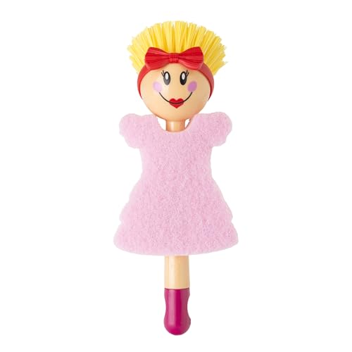 VIGAR Dolls Brosse à Vaisselle avec Manche et Éponge en Forme de Robe, 9 x 7,5 x 23,5 cm, Brosse à Vaisselle Jaune, Éponge Double Face Rouge et Rose, Brosses à Vaisselle pour la Cuisine