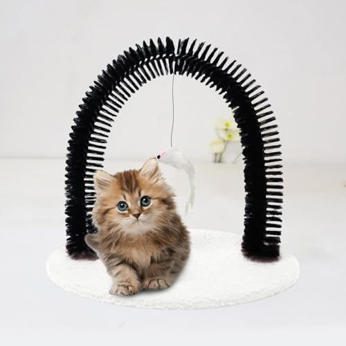 Arche Autolissant pour Chat - Arche De Toilettage Avec Brosse Massante,Outil de Desquamation avec Balle Interactive, Accessoire pour Chaton Jouet de Massage Tête Dos Visage