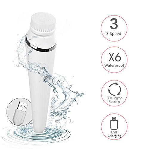 SZRYD Brosse de nettoyage électrique 3 en 1 étanche avec 2 brosses exfoliantes + 1 rouleau de massage du visage (charge USB)