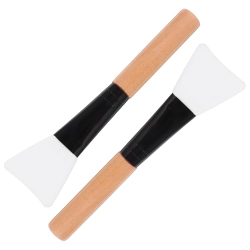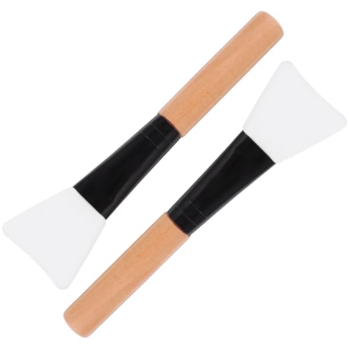 POPETPOP 2 pièces Brosse Applicateur Masque Visage Silicone pour Femmes Manche Ergonomique Bois Doux et Portable pour Application Uniforme de Masque Boueux Outil Beauté Salon Pratique