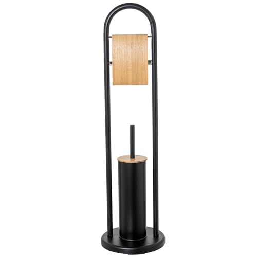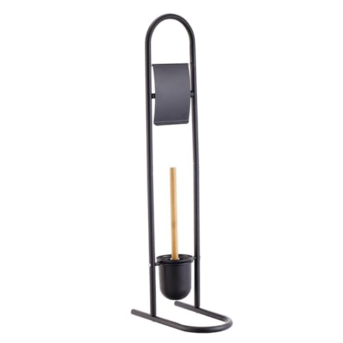 DRW Support pour Papier avec Brosse WC en métal Noir 22 x 22 x 80 cm