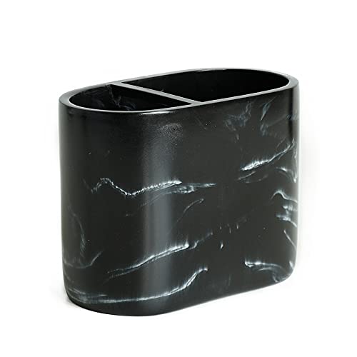 zhanwang Lot de 5 accessoires de salle de bain en marbre avec distributeur de savon, porte-brosse à dents, gobelet à brosse à dents et brosse WC Blanc (noir-6)