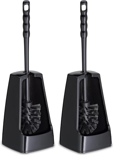 kela Brosse à WC avec réservoir Semi-Ouvert, 38 cm, Brosse pour Toilettes, Ensemble Brosse WC Levin, Noir (Lot de 2)