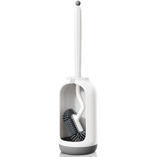 Hamitor Brosse WC Silicone : Brosse Toilettes WC Silicone Souple, Ensemble Porte-Brosse WC à SéChage Rapide, Ventilé Et Vidable - PoignéE Suspendue, Aucun PerçAge Requis, Blanc