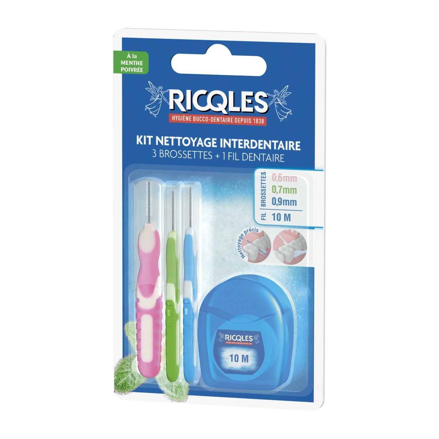 Ricqlès Kit Nettoyage Interdentaire Lot x 3 Brossettes + 1 Fil Dentaire 10m