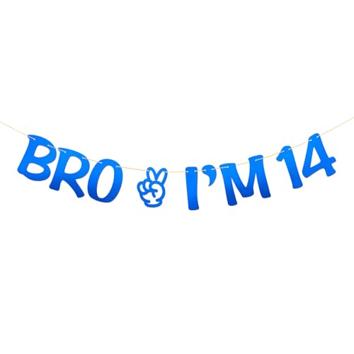Bannière « Brother I'm 14 » – Fournitures de fête d'anniversaire pour garçon – Quatorze ans – Décoration de fête d'anniversaire Big Brother – Bleu miroir
