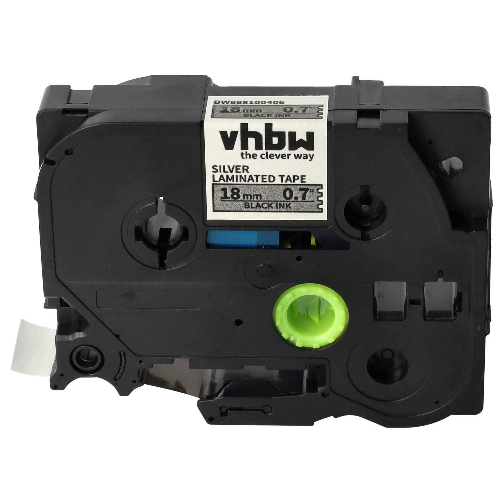 vhbw 1x Ruban compatible avec Brother PT 300, 2730, 2730VP, 300B, 300SP imprimante d'étiquettes 18mm Noir sur Argent mat, extraforte