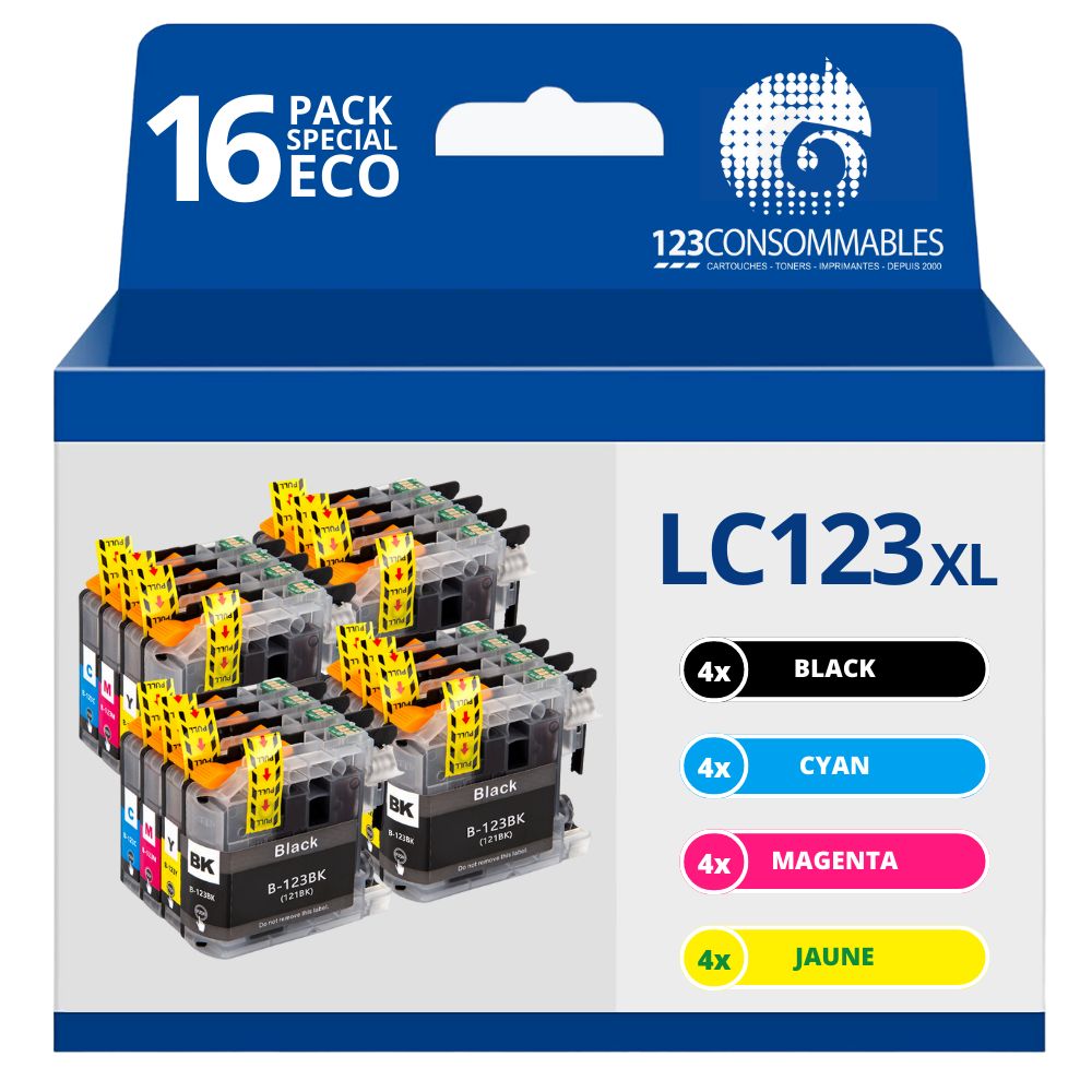 123CONSOMMABLES - LC123 - Pack 16 Cartouches Compatibles avec Brother LC123XL pour Imprimante DCP-J132W J152W J172W J552DW J752DW J4110DW MFC-J245