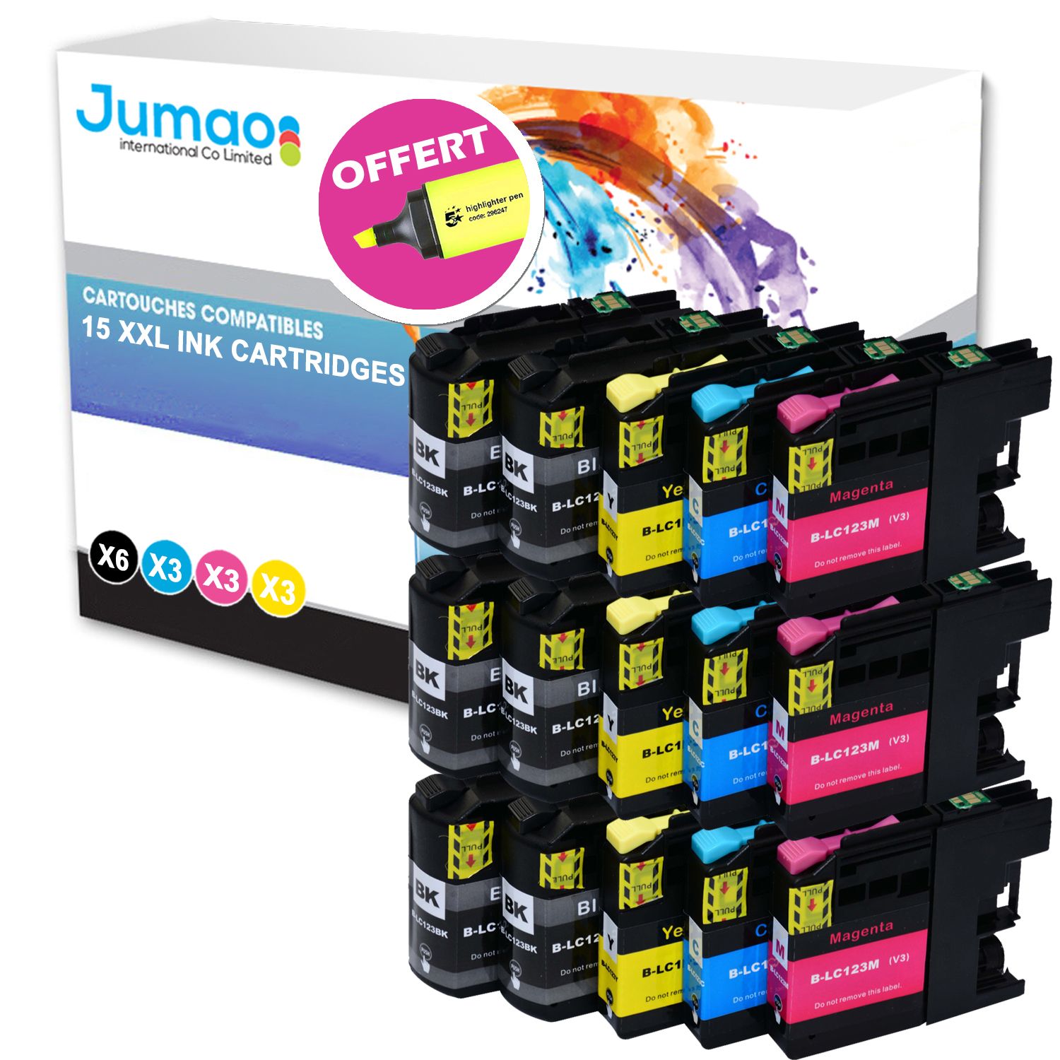 Lot de 15 cartouches jet d'encre type Jumao compatibles pour Brother DCP-J752DW +Fluo offert
