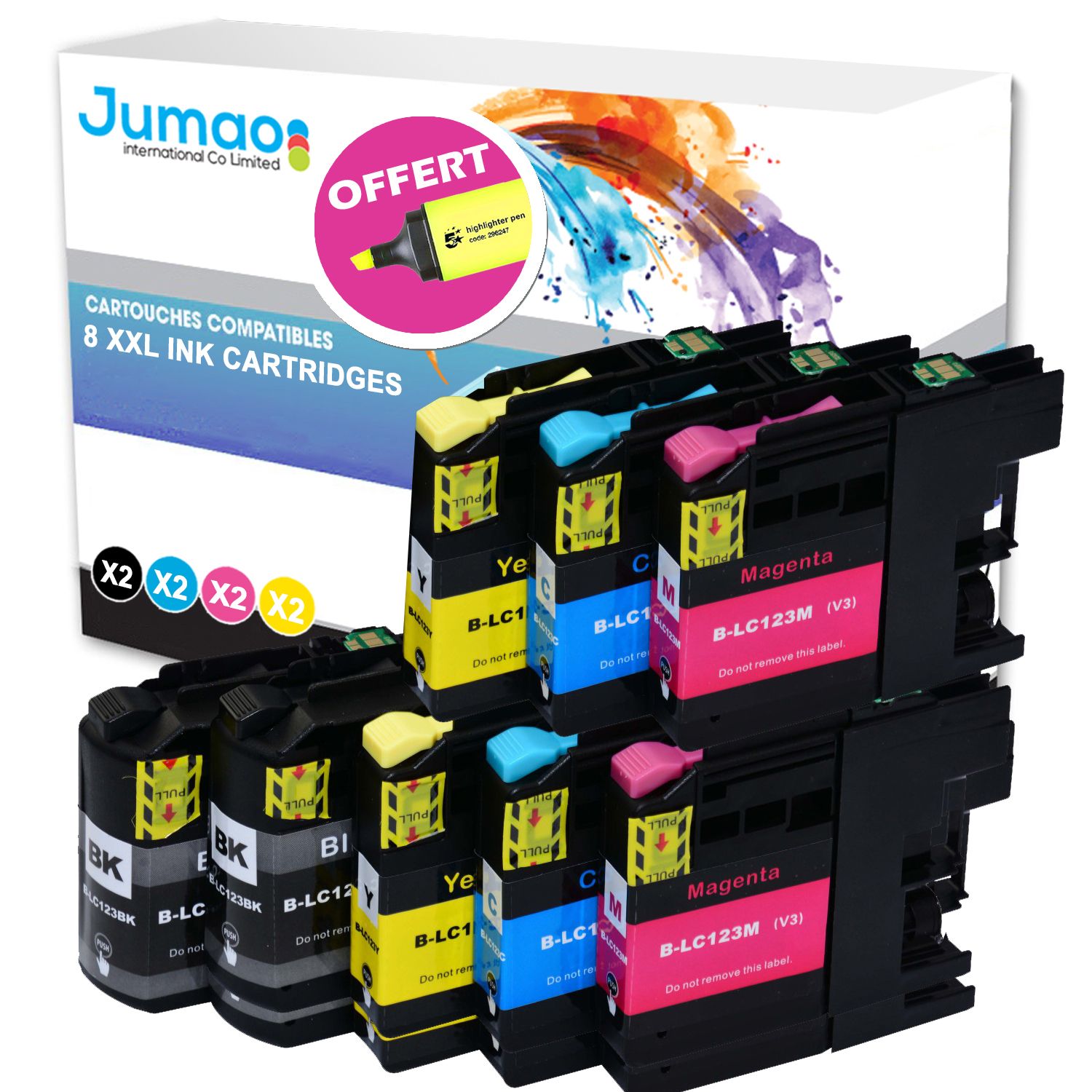 Lot de 8 cartouches jet d'encre type Jumao compatibles pour Brother DCP-J752DW +Fluo offert