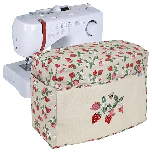 Hobby Gift Exclusif Housse pour Machine à Coudre et à Broder avec Poches, Housse Anti-poussière, pour la Plupart des Machines à Coudre Standard Singer Brother 33.5 x 44 x 21 cm, Des fraises