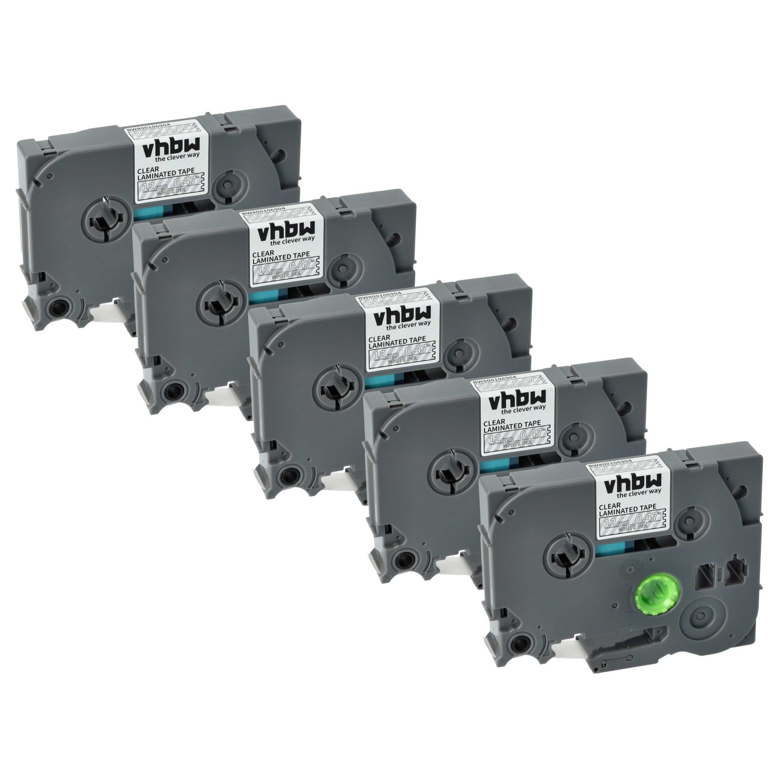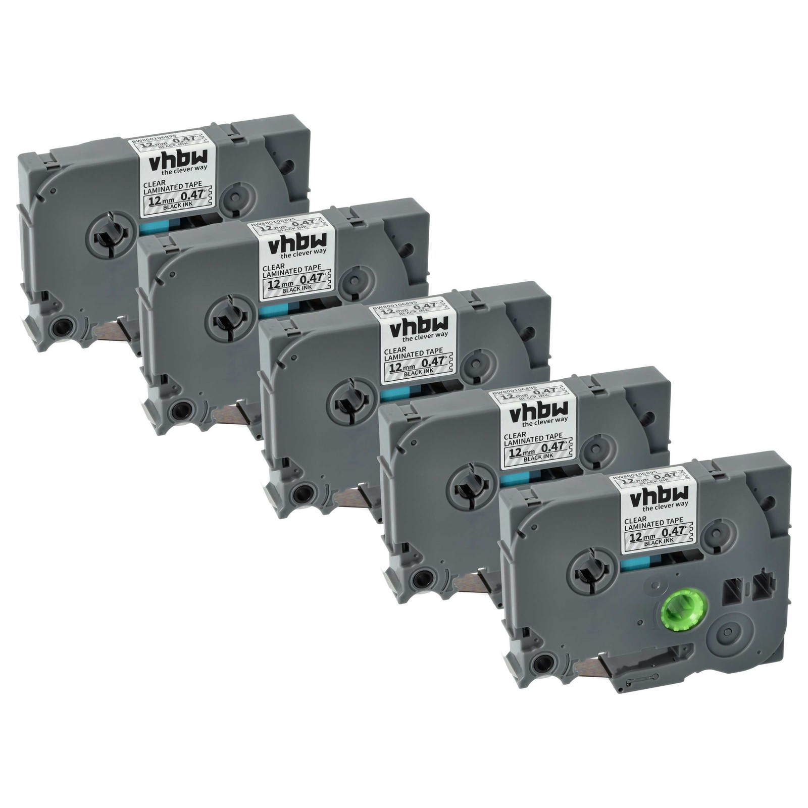 vhbw 5x Rubans compatible avec Brother PT E110, E100B, E115, E105, E100, E100VP imprimante d'étiquettes 8m x 12mm Noir sur Transparent