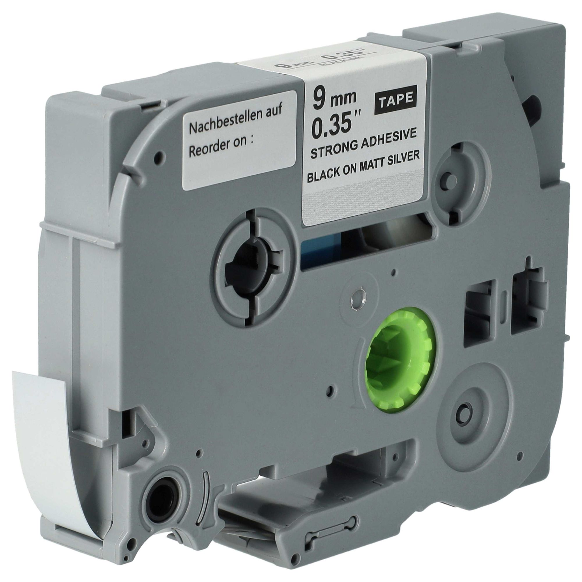 vhbw Ruban compatible avec Brother PT E110, E110VP, E105 imprimante d'étiquettes 8m x 9mm Noir sur Argent mat, extraforte, laminée