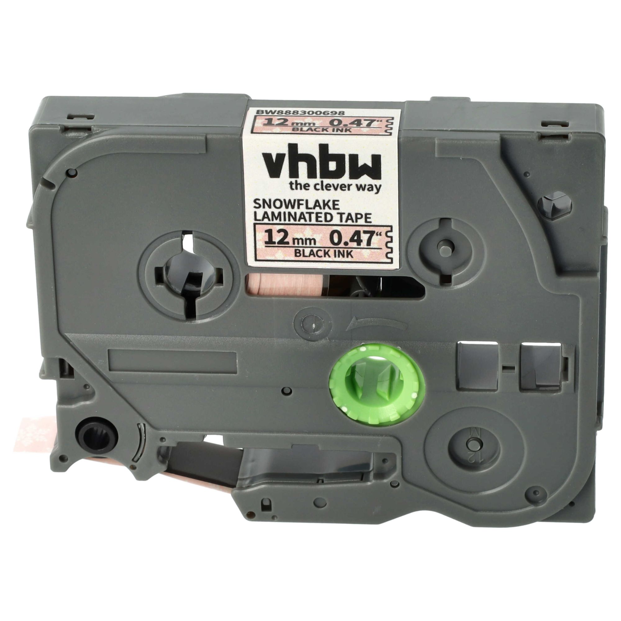 vhbw Ruban compatible avec Brother PT E110, E300, E115, E105, E200 imprimante d'étiquettes 12mm Noir sur Rose/Flocons de neige