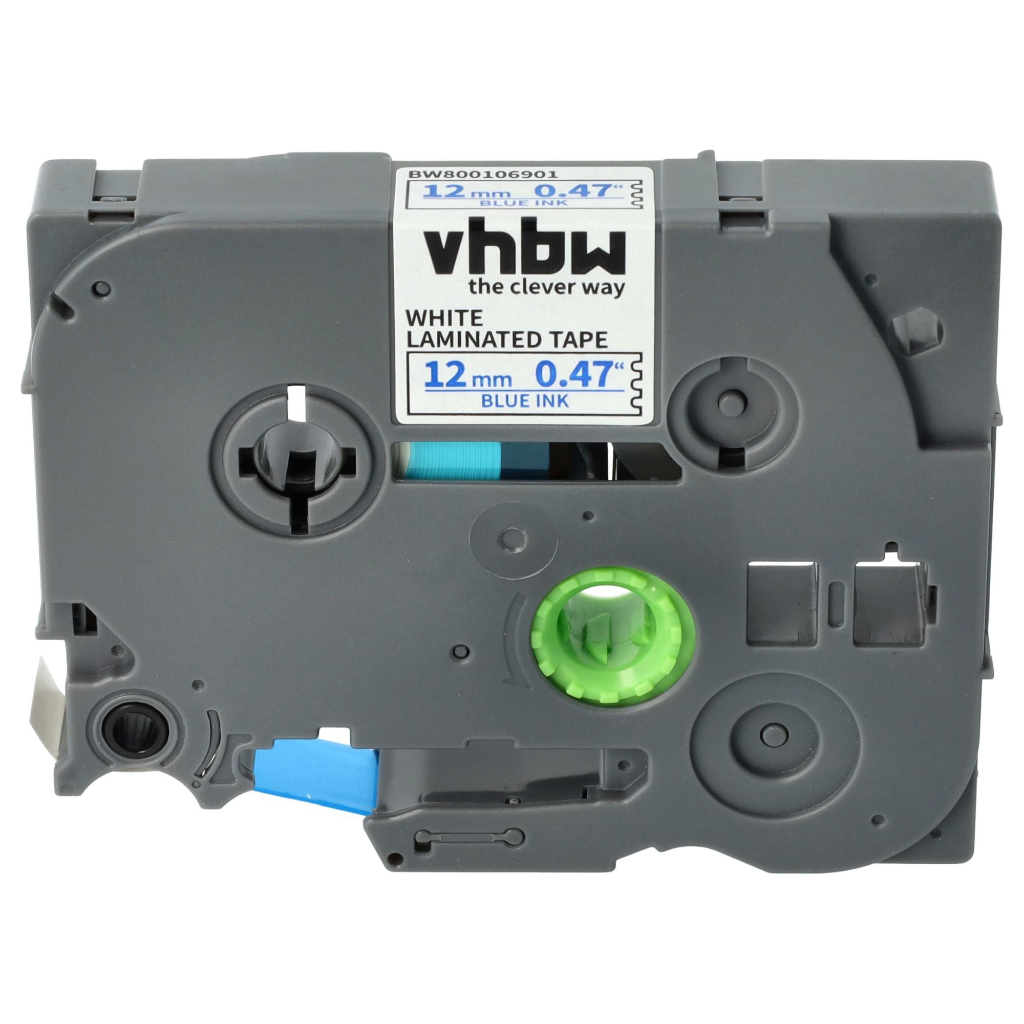vhbw Ruban compatible avec Brother PT E300VP, E110, E300, E115, GL-100, E105, H100, E200, E100VP imprimante d'étiquettes 12mm Bleu sur Blanc