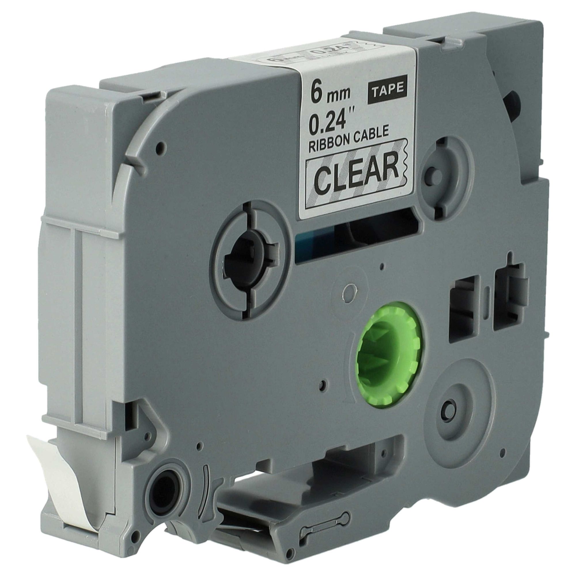 vhbw Ruban compatible avec Brother PT E110, E110VP, E300 imprimante d'étiquettes 8m x 6mm Noir sur Transparent, flexible, laminée