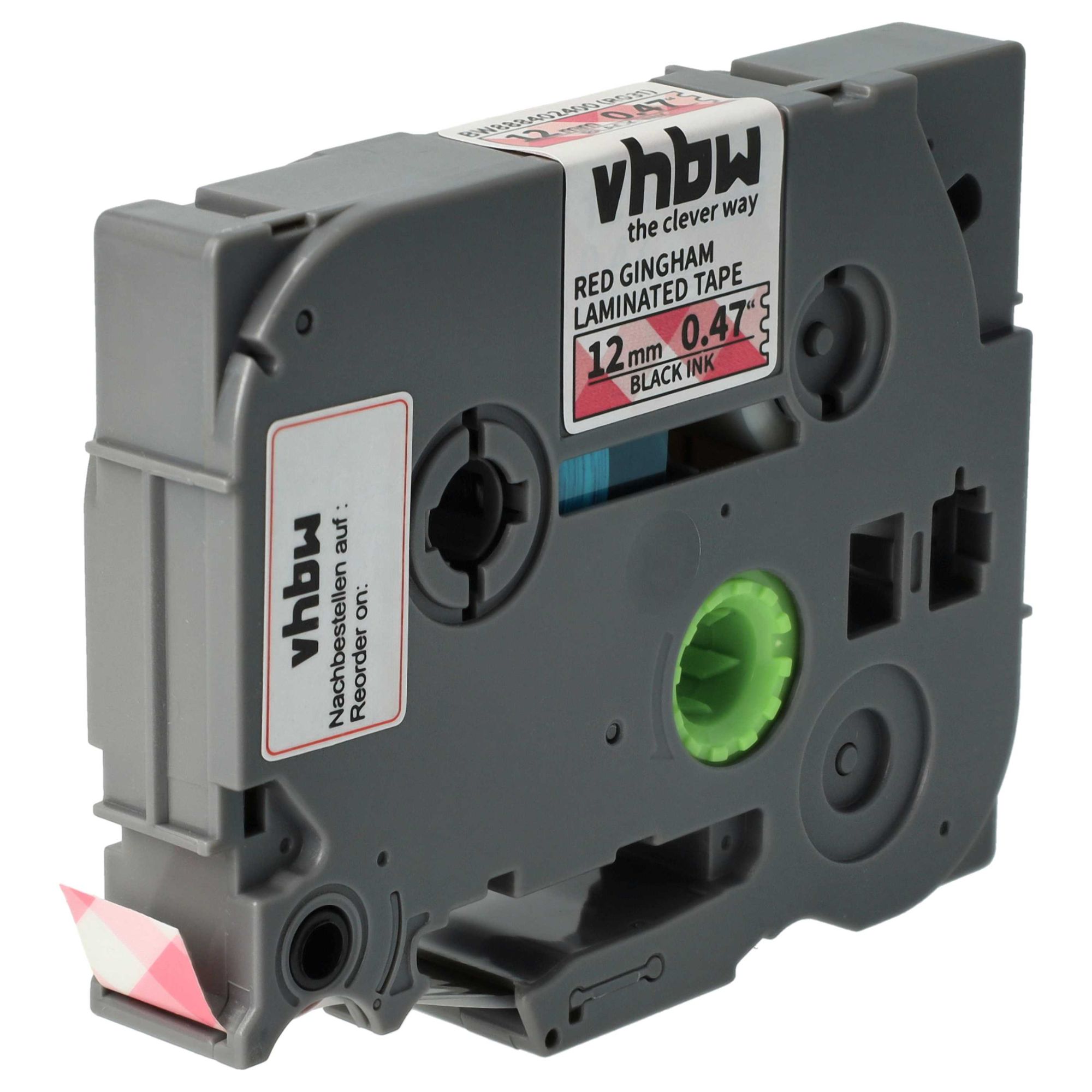 vhbw 1x Ruban compatible avec Brother PT E110, E100B, E115, E105, E200, E100, E100VP imprimante d'étiquettes 12mm Noir sur Rouge à carreaux