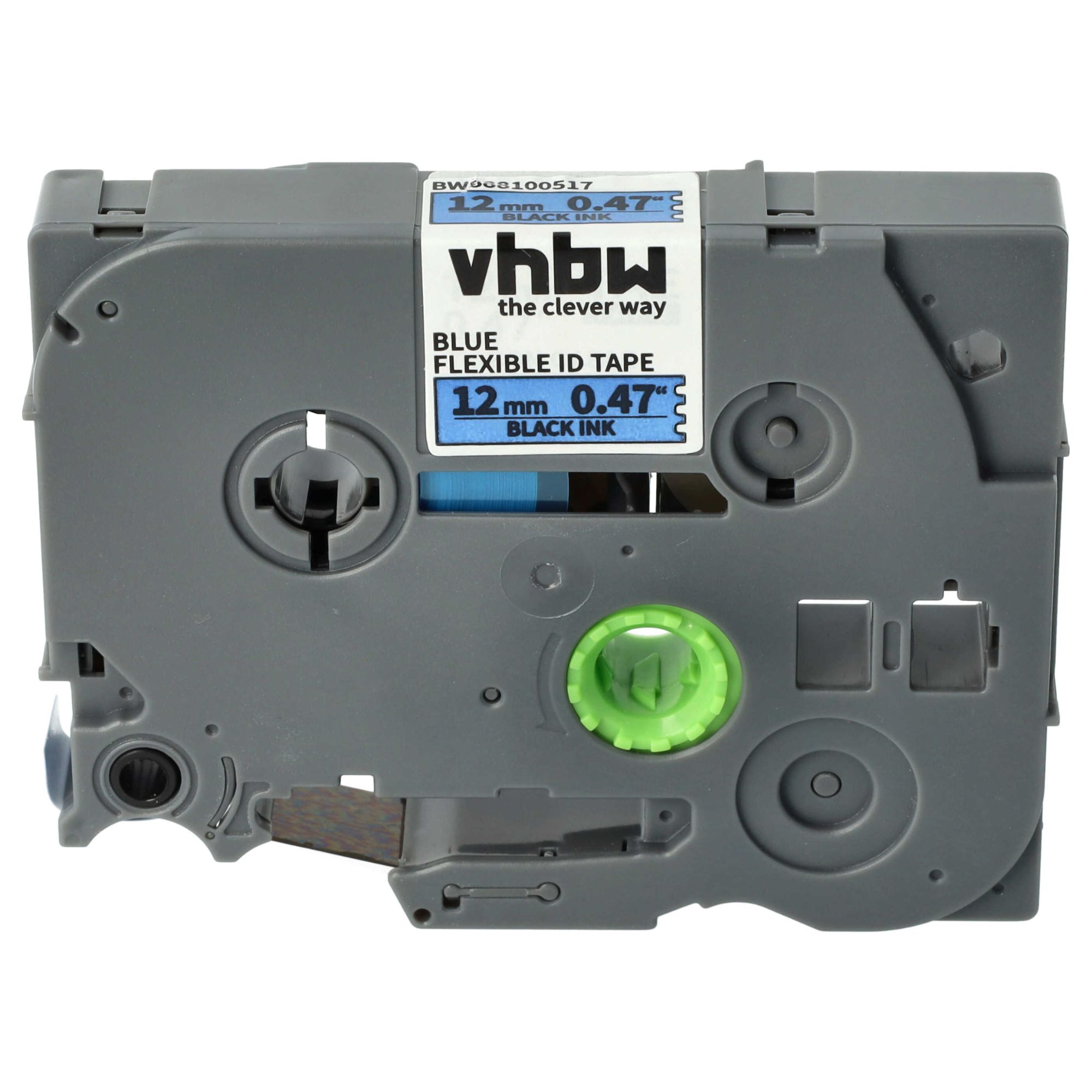 vhbw 1x Ruban compatible avec Brother PT E110, E100B, E115, E105, E110VP, E100VP imprimante d'étiquettes 12mm Noir sur Bleu, flexible